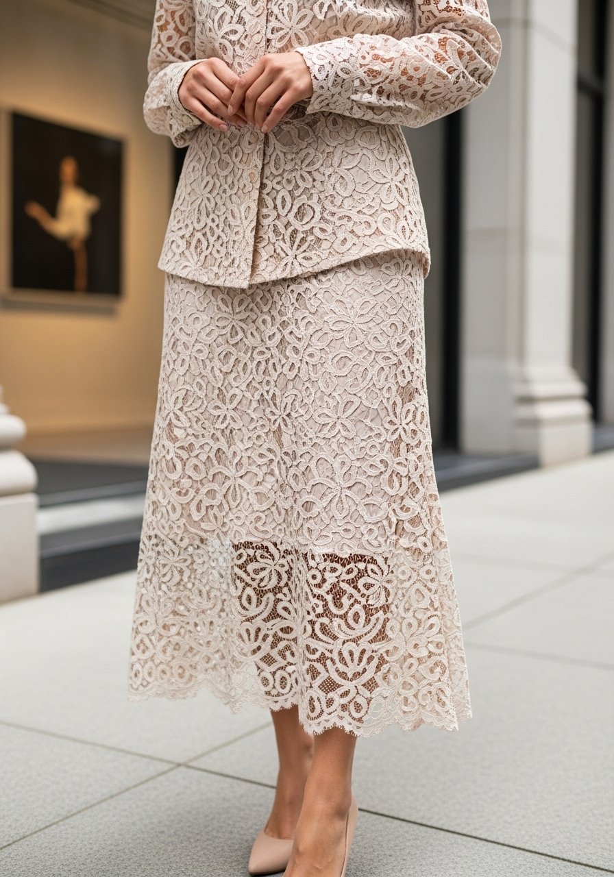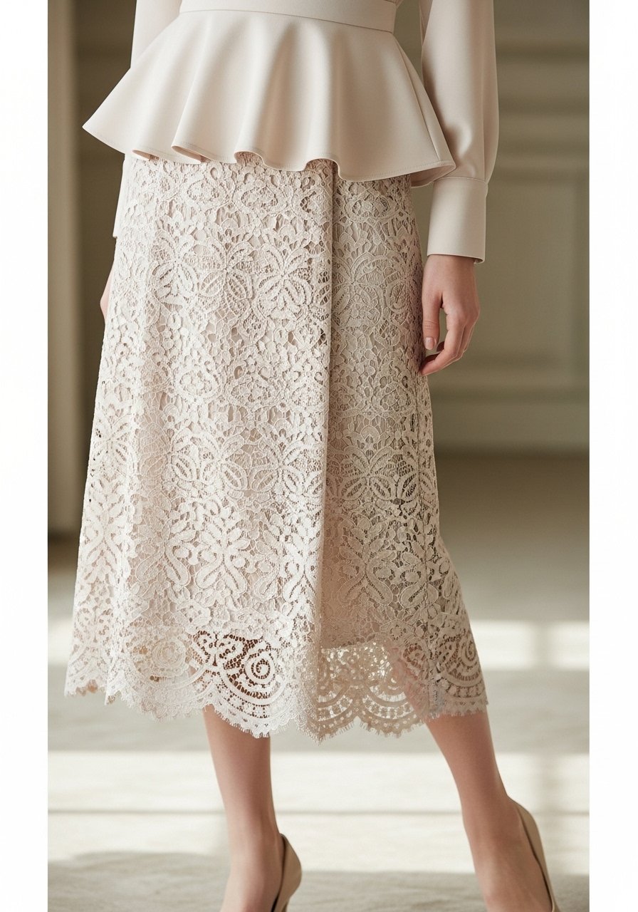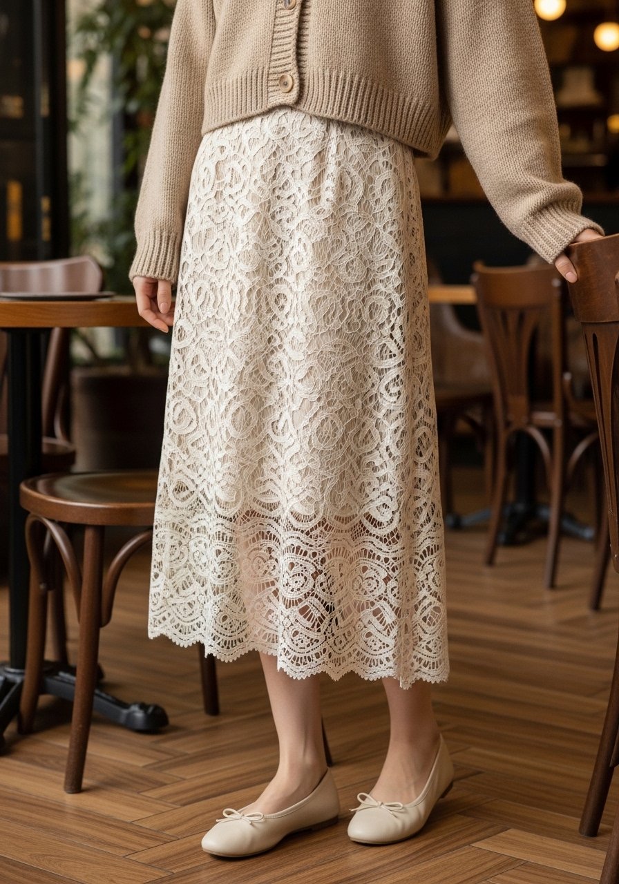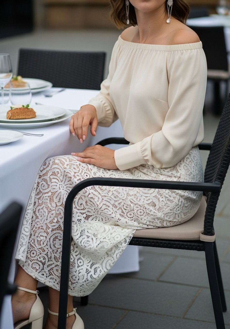 2. Ivory Lace Skirt With Soft Knit Blouse