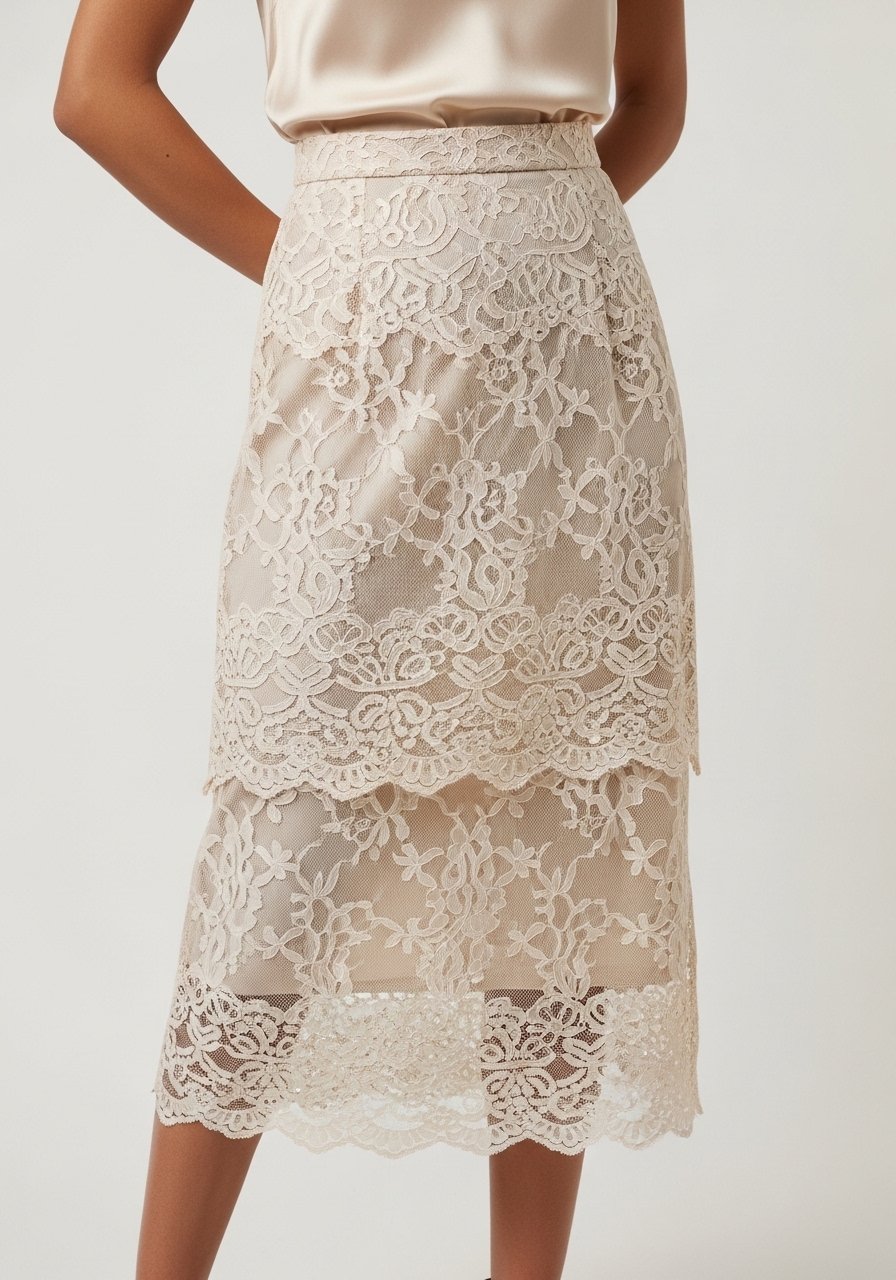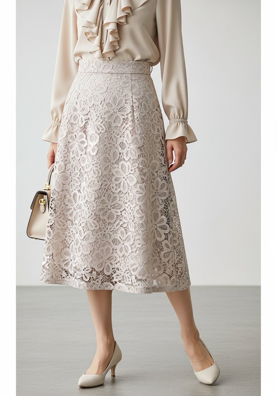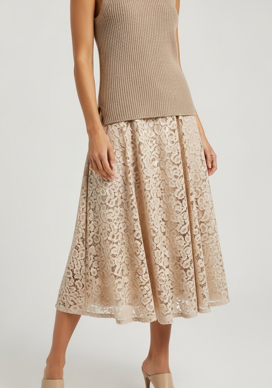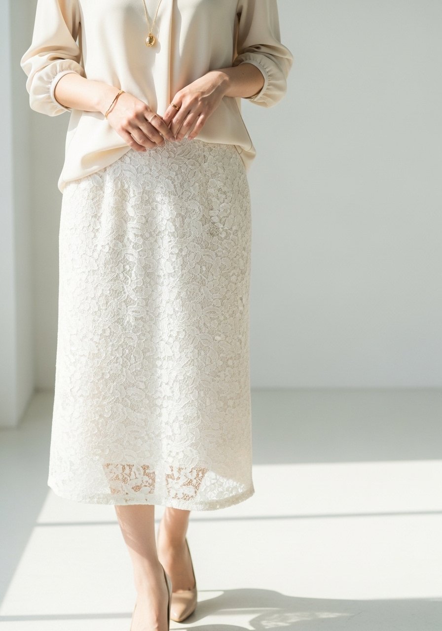2. Ivory Lace Skirt With Soft Knit Blouse