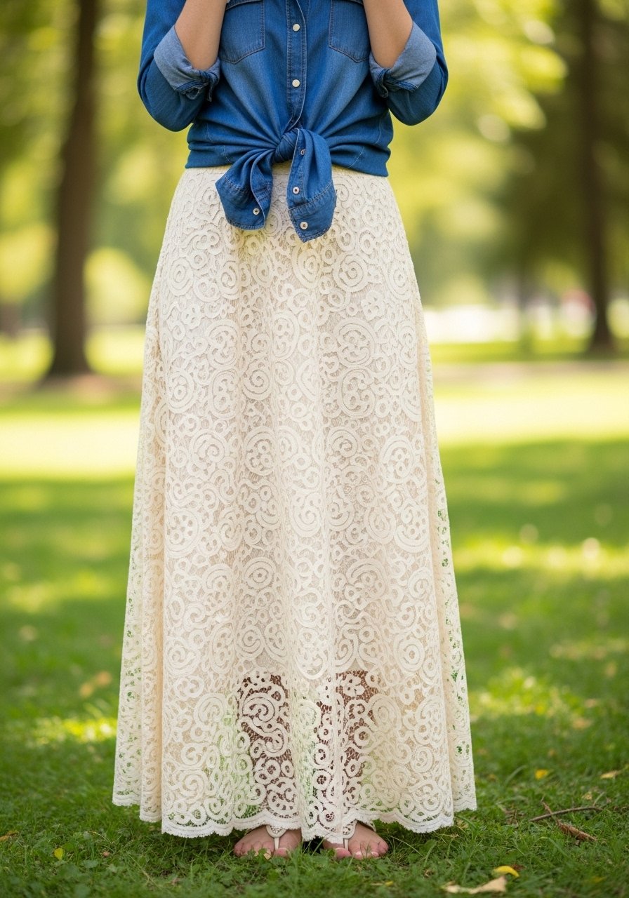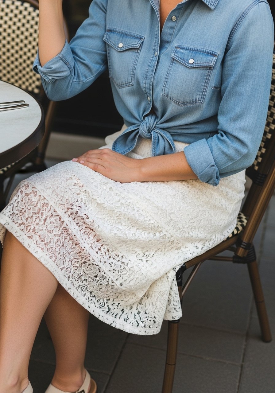 14. Long Lace Maxi With Lightweight Denim Shirt