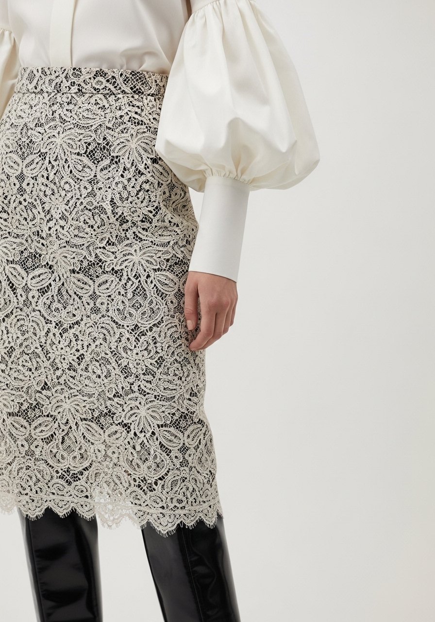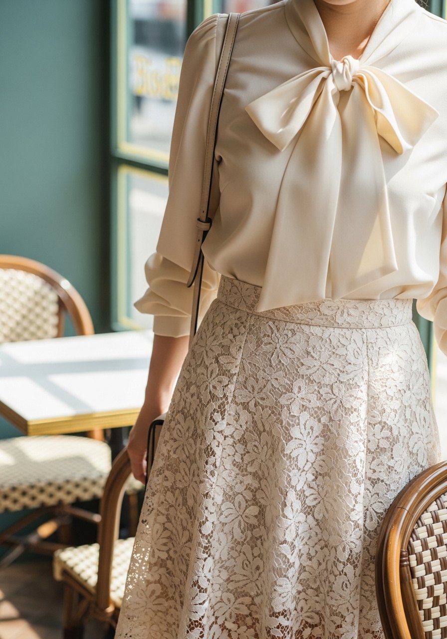 23. Lace Skirt With Satin Bow-Neck Blouse For Evening